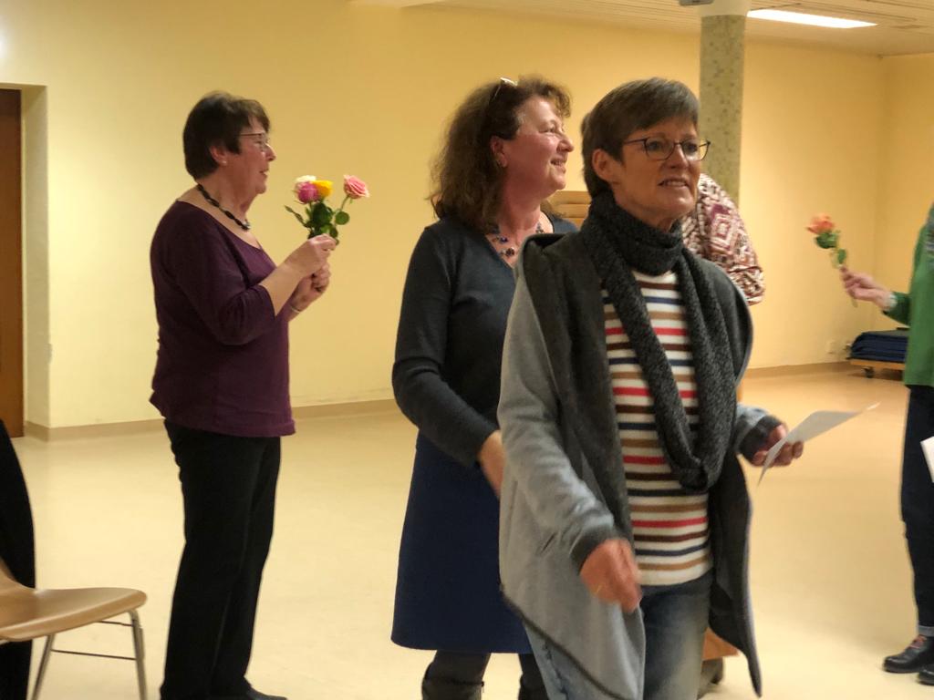 Den Dirigentinnen Amely Heim und Gudula Gertzen dankte sie für die geleistete Arbeit und übergab Blumen und Präsente.