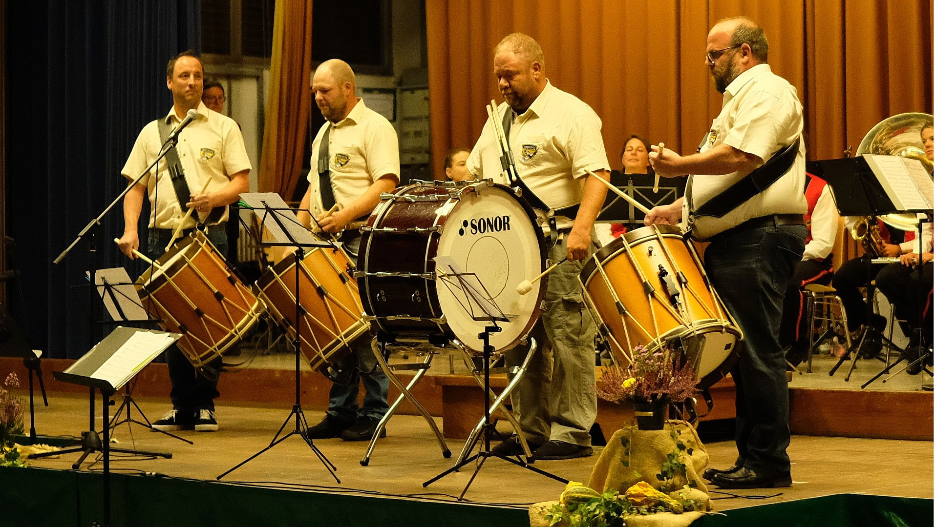Sie begeisterten nicht nur mit ihren Tambouren das Publikum, sondern präsentierten mit ihrem Dirigenten Marcel Kuhn auch eine Reihe schwungvoll vorgetragener Werke für Blasorchester. Mit tosendem Applaus wurde der Medley „80er KULT(our) mit Hits wie „Ich seh‘ den Sternenhimmel“ vom Publikum aufgenommen. Als Zugabe gab es dann noch den „Thriller“ (Michael Jackson).