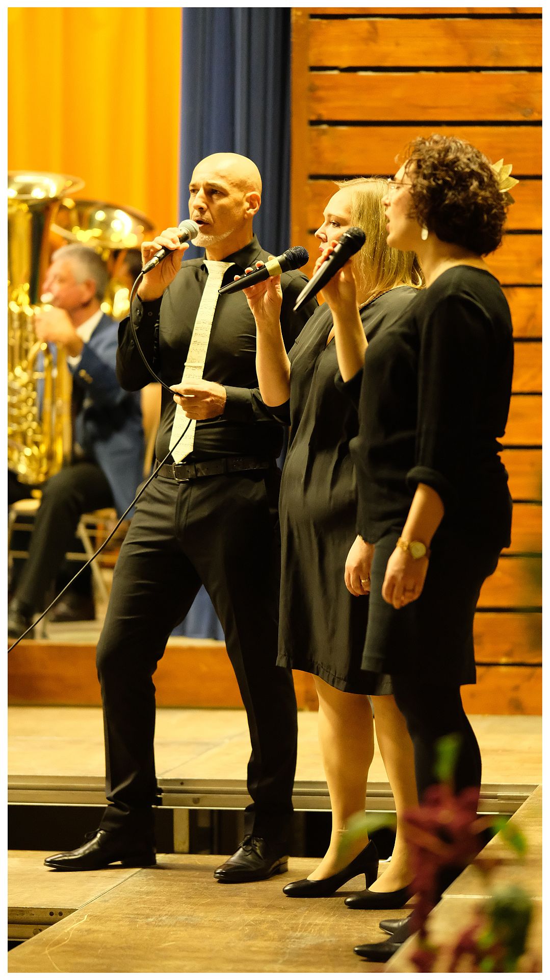 Im folgenden Programmteil begleitete der MV Hugstetten stimmungsvoll die Solisten Amely Heim, Maike Ochsendorf und Hassan Ahmida vom gemischten Chor bei den Liedern „Die Rose“, „ein Teil von meinem Herzen“ und „You raise me up“. Die klaren Stimmen der Solistinnen und der warme Tenor von Hassen Ahmida begeisterten das Publikum.