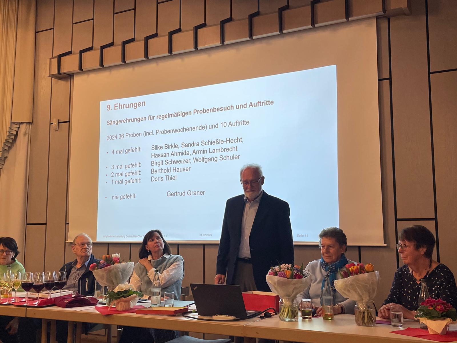 Am 21.02.2025 fand im Bürgerhaus die 109. Mitgliederversammlung des Gemischten Chores Eintracht Hugstetten e.V. statt.