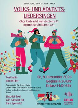 Der Gemischter Chor stimmt Advents- und Volkslieder zum Mitsingen in der Festhalle Buchheim zusammen mit dem Heimatverein an.