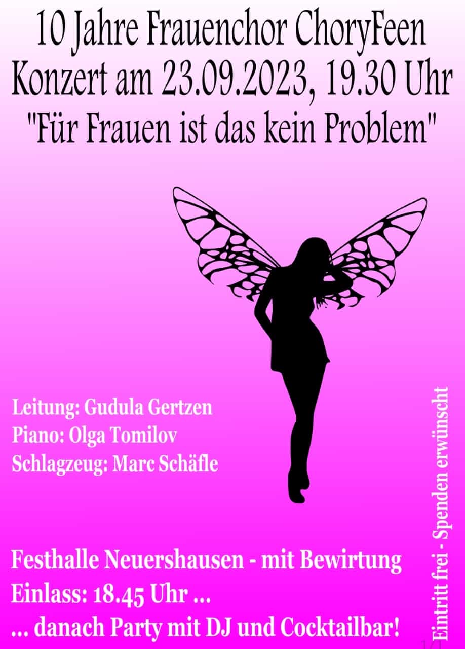 Unter dem Motto „Für Frauen ist das kein Problem“ veranstaltete der Frauenchor Choryfeen am 23.09.2023 in der voll besetzen Festhalle in Neuershausen das Jubiläumskonzert.